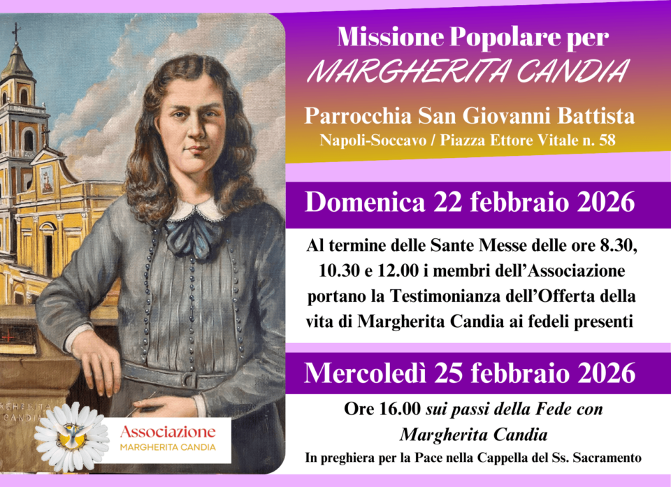 Affidiamo a Margherita tutte le nostre richieste per la Pace, a Lei che si offrì per quella intenzione, dinanzi la Vergine del Santo Rosario a Pompei, il 10 maggio del 1942.